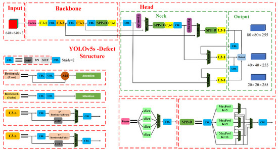 The YOLOv5s network structure mainly consists of four parts: input, backbone network, neck network, and output [21,22,23], as shown in Figure 4, and the * in the figure represents the meaning of the product.