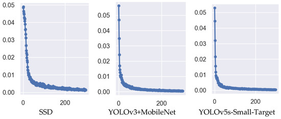From the experimental results in Figure 18, Figure 19, Figure 20 and Figure 21, we can see that the accuracy P of the YOLOv5s-Small-Target algorithm designed in this paper is as high as 99%, which is better than the SSD and YOLOv3 algorithms in terms of model fitting speed and accuracy. The main reason for this result is that the detection objects in this paper are mostly small targets, and the improved algorithm contains a CBAM attention module, which improves the ability to detect small targets, so the comprehensive performance of the improved algorithm is improved.