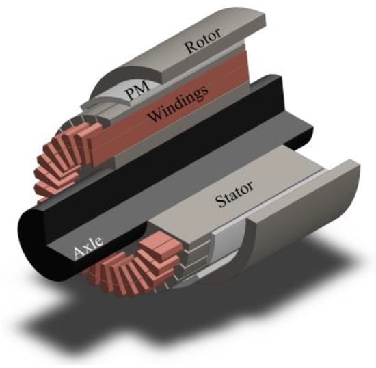 - Martinez, D. Design of a Permanent-Magnet Synchronous Machine with Non-Overlapping Concentrated Windings for the Shell Eco Marathon Urban Prototype. Master’s Thesis, Royal Institute of Technology (KTH), Stockholm, Sweden, 2012. [Google Scholar]