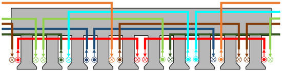 In this study, based on the former introduction in Section 2, four winding patterns and corresponding Ns for a six-pole seven-phase outer-rotor SPM machine (Figure 1) are investigated for In-Wheel application in an E-Motorcycle. The proposed models are designed and analyzed under the same condition, assuming 40 °C of ambient temperature.