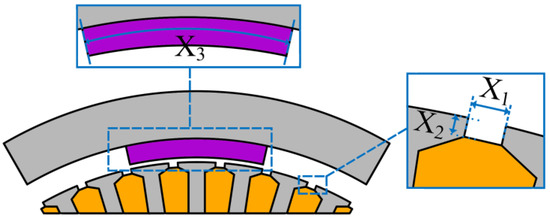 - PM Dimension and slot entrance design variables:0 mm ≤ X1 ≤ 9 mm, 0 mm ≤ X2 ≤ 5 mm, 5° ≤ X3 ≤ 55°
