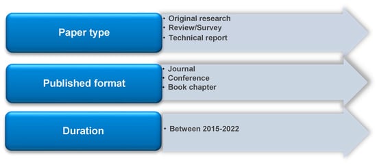 The period of the search was specified between 2015 and 2022. This search period was selected because IoT is still relatively new, and its application can be traced back to 2009. In addition, only a few studies on IoT were published before 2015, and the selected period will provide recent and new achievements on the current trend in IoT and healthcare. The inclusion criteria were specified to be articles of all types (e.g., review, empirical, conceptual, conference proceedings etc.). The reviewed articles included various types of studies related to IoT healthcare services, comprising empirical studies which analyzed primary data using either quantitative, qualitative, or mixed methods to answer specific research questions. The second type was review studies, which are studies that explain and analyze the methodology and results of one or more previous studies as it shown in Figure 1.