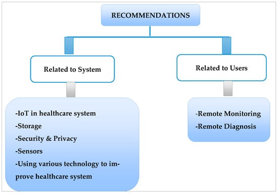 Given the significant role of IoT in the rapid development and revolutionization of technology, one of the most important disciplines that IoT has penetrated is human life and health. The IoT has paved the way for a variety of medical options: normal medical devices that capture useful additional data on the internet, provide additional information on symptoms and patterns, allow remote therapy to be provided, and typically monitor patients’ recoveries and treatments [7,8]. In addition, IoT can easily be adopted by others. It provides access to the healthcare system and storage of data [7,8], while facilitating effective interaction between specialized doctors and medical staff, as well as easy access to patients’ data [9], as well as interaction with doctors [7].