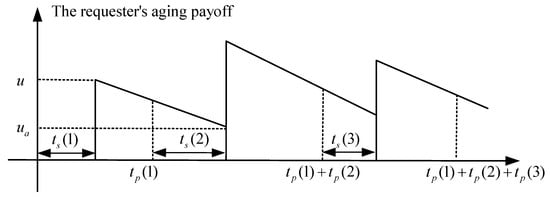However, the above-mentioned works seldom considered the aging of information due to the sensing and reporting delay in a dynamic wireless network. The aging of information has profound implications in wireless networks and has been extensively studied in the literature [,,,,,]. Many emerging applications, such as autonomous driving, interactive gaming, and virtual reality, depend on timely transmission and processing of the sensing data. The aging of information is used to characterize the information freshness in such time-sensitive applications. This concept can be also studied in spatial crowdsensing of a wireless sensor network. Ideally, the information requester aims to collect immediate responses from all crowd workers. Due to temporal correlation, the crowd workers’ immediate responses will provide the most relevant information to the requester and, thus, have the best quality of information. However, the distributed nature of crowd workers in a wireless sensor network implies that the time delay of information updates from individual crowd workers becomes stochastic. The crowd worker’s sensing information will arrive at the information requester randomly. Considering a dynamic network environment, the sensing information gradually becomes out of date or obsolete as the delay increases. Thus, a higher delay in the sensing information will introduce negative effect to the value of information at the requester. This can be modeled by the aging effect, which characterizes the rate of decreasing in the value of information. Moreover, to maintain an intimate understanding of the environment, the information requester may regularly send crowdsensing tasks to update context awareness. During two subsequent information updates, the context awareness will experience the aging effect, i.e., the value of information is decaying over time until the next information update. In spatial crowdsensing of a wireless sensor network, the wireless channel for information reporting is normally unreliable and difficult to predict accurately. Due to the aging of sensing information, the random delay will introduce uncertainty in the value of information at the information requester. In addition, the crowd workers may have limited energy resources. This makes it more difficult to incentivize the crowd workers and optimally schedule their information updates.