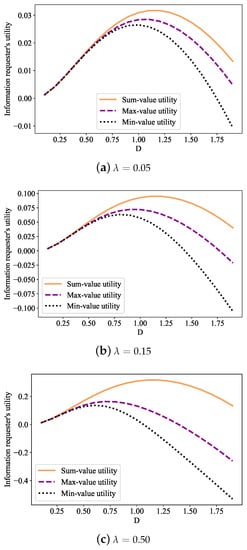 The information requester’s utilities with the sum-, max-, and min-value of information, respectively.