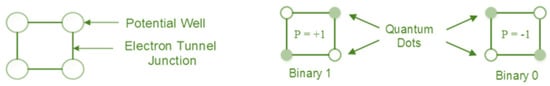 - Lent, C.S.; Tougaw, P.D. Lines of interacting quantum-dot cells: A binary wire. J. Appl. Phys. 1993, 74, 6227–6233. [Google Scholar] [CrossRef]