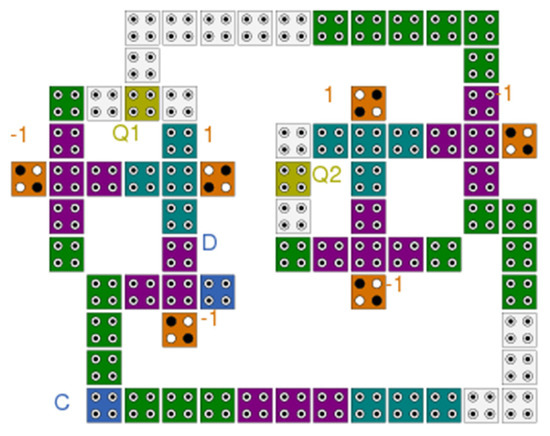 - Tougaw, P.D.; Lent, C.S. Logical devices implemented using quantum cellular automata. J. Appl. Phys. 1994, 75, 1818–1825. [Google Scholar] [CrossRef]
