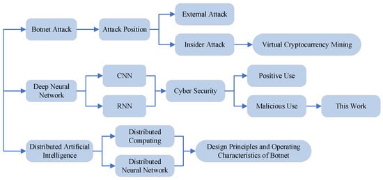 In this paper, we study a novel attack model combining a botnet and artificial intelligence techniques. This is a topic with limited directly related research, so we describe the background and related work in terms of botnet attacks, deep neural networks and distributed artificial intelligence. As shown in Figure 1, we first classify botnet attacks according to different attack locations and compare similarities and differences between the work in this paper and virtual currency mining; then, we introduce two typical deep neural networks and analyze their applications in network security; finally, we introduce the concept of distributed computing and the related work on distributed neural networks.