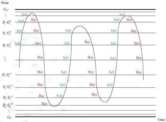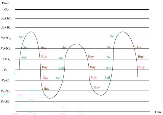 After the setting of the grid model, the trading is based on this grid to buy and sell financial products with the rise and fall of prices. An example of the equal-distance grid is shown in Figure 1.