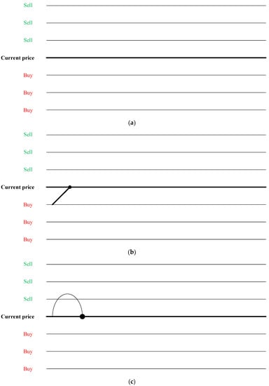 The most basic definition of the grid trading method is an average pending order within a specific price range to carry out a trading strategy of buying low and selling high []. The principle of grid trading is simple but it can effectively earn spread profits when prices fluctuate. In recent years, this strategy has been often applied to arbitrage in many financial markets [,].