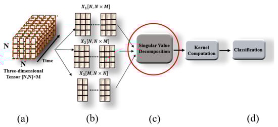 where , ,, and are, respectively, the Frobenius norm, the singular vectors of the unfolded matrix in the online stage, and the singular vectors of the unfolded matrix in the training stage and the bandwidth of the kernel function. The singular values in Equation (3) are generated after computing the SVD.