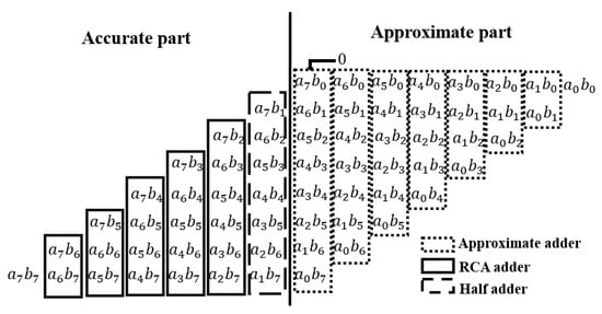 - Liu, C.; Han, J.; Lombardi, F. A low-power, high-performance approximate multiplier with configurable partial error recovery. In Proceedings of the Design, Automation and Test in Europe, DATE, Dresden, Germany, 24–28 March 2014. [Google Scholar]