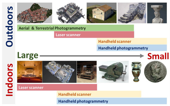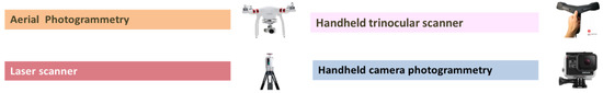 The following digitization modalities are employed depending on the type of environment and size of the scanned area, as illustrated in Figure 3.