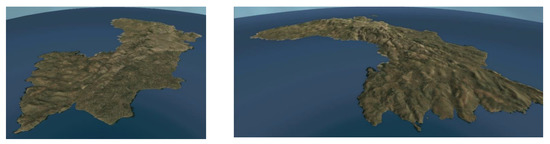 The main limitation of DTMs is that they do not include textures. For this purpose, two are the main possible variations. An artistic approach to terrain texturing is to “paint” the terrain using conventional digital drawing tools. Another approach is to attach textures from remote sensing (satellite) images to the terrain mesh [45]. The result of both approaches is a terrain mesh of a geographic area in a level of realism that depends on the accuracy and density of the heightmap and the quality of the applied textures.