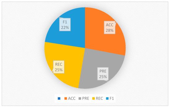 Table 6 summarizes the studies classified based on a number of predictive features and model performance. Most studies focused on the IoT environment using one of the following: ARM-based IoT applications, IoT/fog networks, Bot-IoT traffic, IIoT, healthcare IoT, power grid, smart city and IoT traffic. Conversely, performance focus determines the input of cybersecurity detection, which includes the detection of new malware samples in IoT applications/devices, effective attack detection of threats owing to the use of AI methods in IoT, and anomaly intrusion identification. Additionally, a number of predictive features, characteristics or attributes are used as a value that determines the resulting outcome of cybersecurity detection. To evaluate AI models different evaluation metrics have been used which include accuracy (ACC), precision (PRE), recall (REC), and f-measure (F1). In addition, Figure 7 shows the frequency of model performance of the studies.