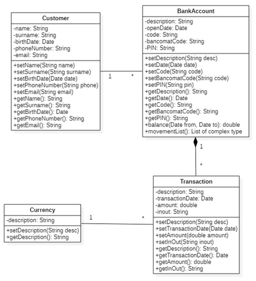 To build the metadata repository about class diagrams, the flexibility demonstrated by document databases is fully satisfactory; in fact, it makes the database schema independent of the internal organization of the classes in the class diagram. Specifically, flexibility is needed to model the names and data types of attributes and the names and I/O parameters of the operations. Both these features are highly variable moving from one class to another. We took into account two alternative open-source technologies: MongoDB and PostgreSQL (from version 11.0, the latter system fully supports the storage of documents in the JSONB format, as MongoDB does). The final choice was to adopt PostgreSQL because it closed the gap that motivated the rise and development of NoSQL technologies; moreover, PostgreSQL provides capabilities that NoSQL technologies simply cannot, namely a powerful query language, a sophisticated query optimizer, data normalization, joins and referential integrity. A positive consequence of the availability of a powerful query optimizer is that PostgreSQL outperforms MongoDB in almost all cases, as has been pointed out in recent studies (e.g., [23,24]). For example, in [24], the authors loaded a dataset of 200 million records of JSON documents in MongoDB (Community Server1, ver. 4) and in PostgreSQL (ver. 11) using the JSONB data type. The aim of the experiment was to compare the performance of the two systems on four custom-written queries over one year of GitHub archive data. PostgreSQL was found to be between 35 and 53% faster on three of the four queries, and 22% slower on the other one.