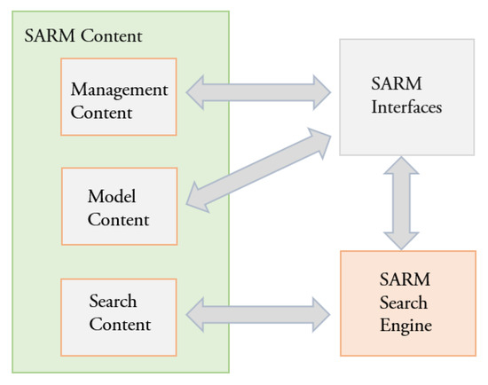 Repositories are the precondition for reuse, as highlighted in many studies (e.g., [4,5,6,7,8,9]). Ref. [4] provides a list of the most representative repositories. In this study, we assume that the corporate repository is structured as three independent but interrelated components: