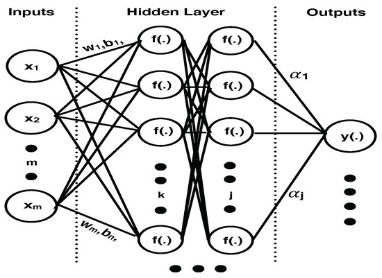 where x is the independent variable, , , are bounded real-valued adaptive parameters from neural networks, k is the total number of hidden nodes and is the activation function of neural networks, here it takes the form of a sigmoid function.