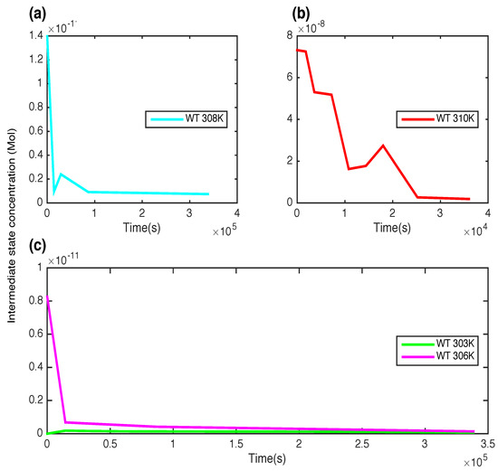 Another point worth noticing is that even though we used a primarily deterministic model, we also incorporated stochasticity into our system since a particular reacting species(intermediate state) exist only in a very low concentration. The stochasticity was incorporated into a time dependent reaction rate constant . This stochasticity helped us in producing the correct intermediate state dynamics.