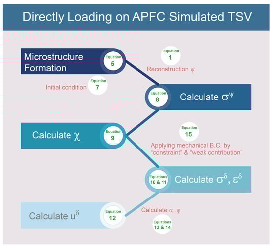 For a better understanding of the present work, an overview of the APFC model implementation with cross-referenced mathematical equations is shown in Figure 2.
