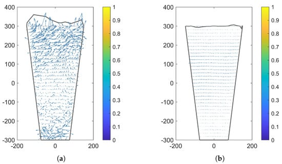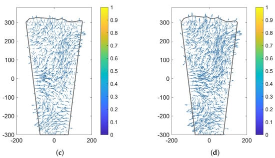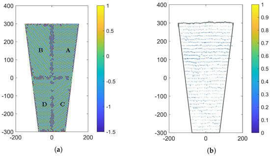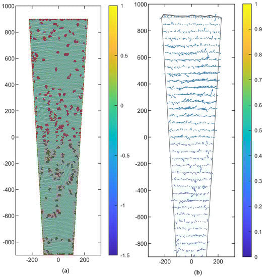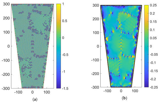 In addition to solving Equation (5), it requires computing an additional smooth distortion to fulfill the condition of mechanical equilibrium, i.e., . The stress field can be decomposed into two parts and . is derived from the density field , and then it can be expressed by [24,25,26]: