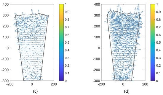 The simulations reported in this study are performed by integrating COMSOL Multiphysics (hereinafter referred to as COMSOL) with MATLAB. All the PDEs are solved using the FEM and implemented in COMSOL, and postprocessing and visualization of the results are conducted in MATLAB. In order to match the geometry of real TSVs after the dry reactive ion etching (DRIE) or RIE process [33,34], a trapezoidal geometry is adopted in this study, as shown in Figure 1. Note that all the variables in the model are dimensionless. Enforcing an external loading to the TSV is implemented in COMSOL by applying constraints and weak contributions to the left and right boundaries of the TSV. The constraint related to is directly implemented as a “constraint”. The principles behind the weak contribution can be briefly introduced as follows. According to the variational principle [35],