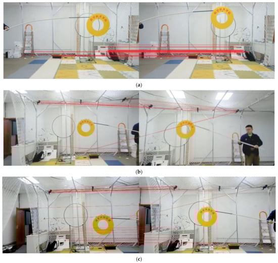 The schematic diagram of randomly extracting orb feature point matching: (a–c) is the orb feature points matching between two pairs of pictures.