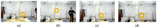 Indoor moving target tracking scene: (a–d) is a schematic diagram of the scene of a moving platform tracking a circular target.