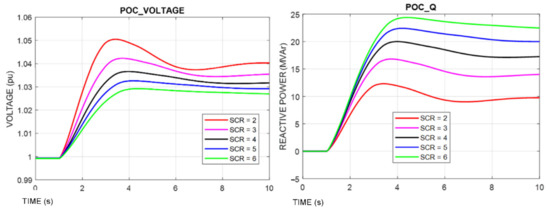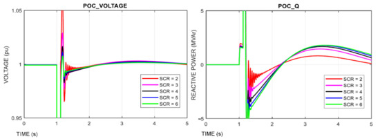 Comparing the performance when SCR equals 2, 3, 4, 5, 6 for the Deep Fault Test and 5% for the Voltage Step Test, the key outcomes of this simulation are as follows.