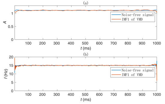 - EMD and VMD were used to denoise simple signals. There is an obvious mode-aliasing problem in EMD decomposition, which cannot effectively decompose the random noise. VMD can be used in signal denoising, and the denoising effect is good.