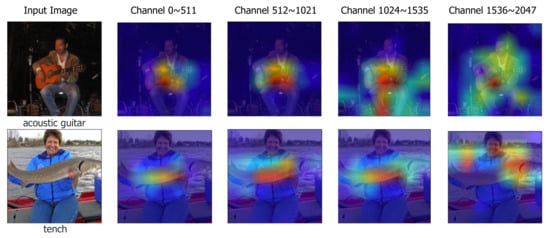 Grad-CAM visualization of channels with respect to sub-classifiers.