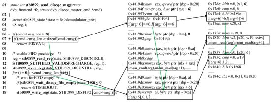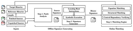 - Pewny, J.; Schuster, F.; Bernhard, L.; Holz, T.; Rossow, C. Leveraging semantic signatures for bug search in binary programs. In Proceedings of the 30th Annual Computer Security Applications Conference, New Orleans, LA, USA, 8–12 December 2014; pp. 406–415. [Google Scholar]