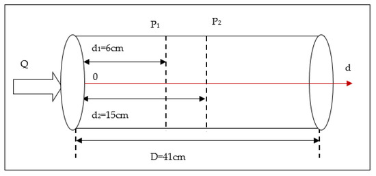 The goal was to keep the temperature at the specified setpoint at two places, P2 and P2, at a distance of d1 = 6 cm and d2 = 15 cm from the heating resistor, respectively (Figure 3).