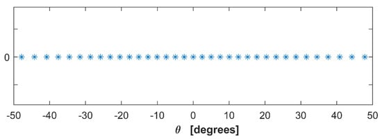 Such a number is called Shannon number and it is essentially equal to the NDF of the far field. This means that the interpolation Formula (33) exploits a non-redundant number of field samples. Moreover, from Equation (33), it is evident that the optimal sampling points of the far field in the variable are given by