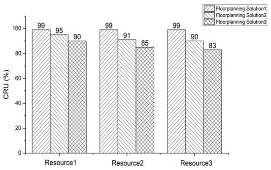 CRU corresponding to three floorplanning solutions with different resource.