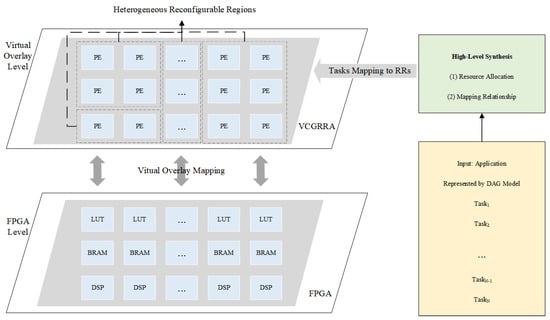 VCGRRA is an FPGA overlay that is conceptually located between the user application and the physical FPGA. User applications are not implemented directly on the physical FPGA but in the intermediate architecture. This shields the difference in resource requirements for different tasks and improves the portability and compatibility of tasks. Therefore, VCGRRA can be used to define quickly and dynamically change custom applications without (re)compilation, shortening the entire design cycle [,,,].