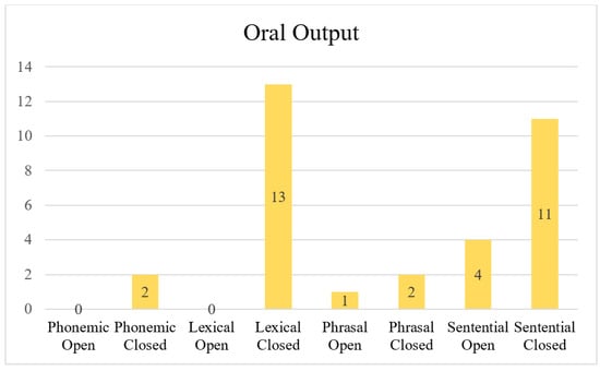 Language output produced by the learners mostly consisted of sentential, closed answers (n = 11), followed by lexical, closed answers (n = 13), and others (See Figure 5).