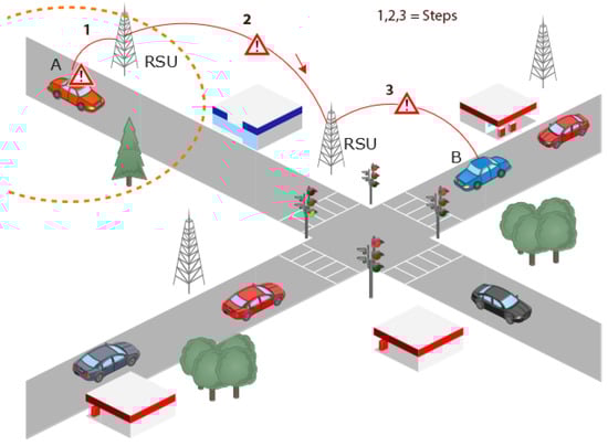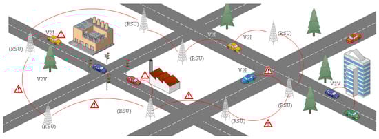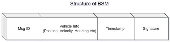 A lot of data are shared through the vehicular network and are made available for the consumption of the surrounding vehicles. This information contains important events as well as regular updates about the generating source. Important events can be classified as data regarding any road accidents, heavy traffic, and/or any relevant urgent information that needs to be addressed in real time, whereas regular updates are messages that are periodically generated by vehicles informing others about their speed, location, heading, etc., known as basic safety messages (BSMs). In an ideal situation, the information is disseminated flawlessly in connected vehicles, but in actuality, this information is vulnerable to attacks initiated by malicious attacker vehicles present in the network. Schemes need to be adopted to counter and detect attacks that are currently exploiting the network. In [2], the authors surveyed identity-based cryptographic schemes used for the security and privacy concerns in VANETs. The protection and safeguarding of the regular updates are as vital as the important messages that are disseminated in a timely manner, as any potential attacker could be listening in on the regular updates of the connected vehicles and could launch different types of attacks depending on the attacker’s intention. In [3], the authors proposed a secure data-sharing scheme for 5G-enabled vehicular networks without using the RSUs.