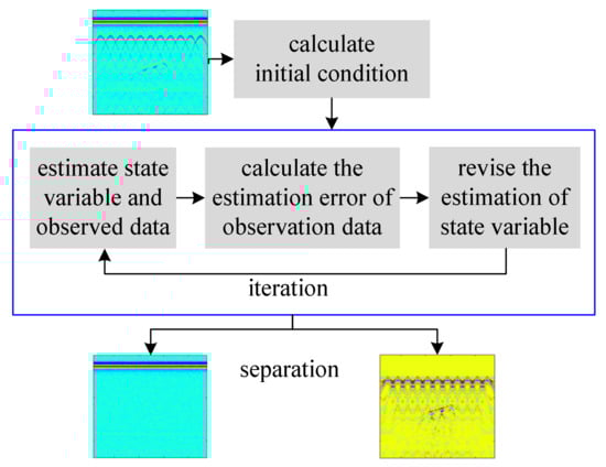 Along with the progress of the Kalman filter iterations, the target signals will gradually be separated from the clutter. The processing chain for the Kalman filtering under hypothesis is as shown in Figure 2. The number of iterations is set by the signal-to-clutter ratio (SCR), and the target signal separated in the iteration is .