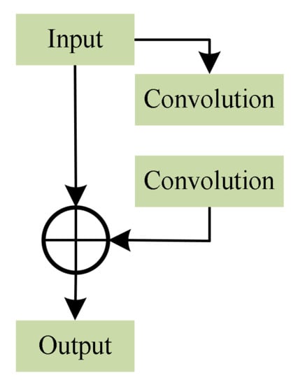 In order to avoid the problem of network degradation in the process of network training, this paper adds a residual block, as shown in Figure 6, and it trains the Unet, attention Unet, and attention Unet with the residual block using the disease data set at the same time. The superiority of the proposed network is verified by the suppression of the rebar interference.