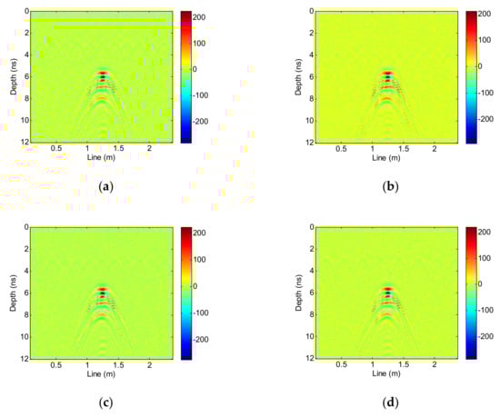 - Yao, Q.; Chun-lin, H.; Min, L.; Wei, X. Adaptive clutter reduction based on wavelet transform and principal component analysis for ground penetrating radar. J. Radars 2015, 4, 445–451. [Google Scholar]