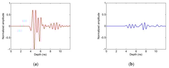 When the target signal is not contained in the A-scan data , the state equation and measurement equation of the GPR data can be rewritten as Equations (16) and (17), respectively. The processing chain for the Kalman filtering under hypothesis is similar to that of hypothesis :