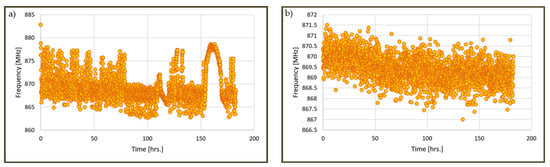 We have demonstrated that, as the stress of the test is lowered, the noise in the results is more visible in the data. Correction of the data by excluding longer failure times is less effective with the decrease in stress. In any case, the results obtained by filtering out non-fitting parts of the plot show a high level of accuracy. The outcome shows frequency dependence, as it is seen that the TTF is shorter in the higher frequencies. The results of the tests remain well within the range of values received in tests run in high temperature, voltage, and frequency stresses in previous studies [16].