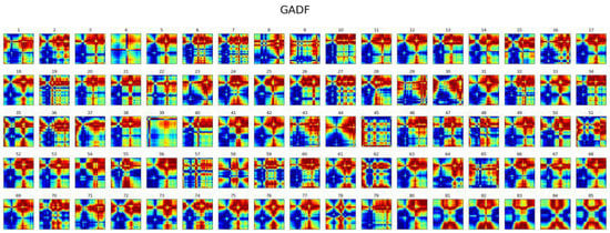 Gramian angular difference field (GADF) is defined as Equation 5 of the difference between the angles of the polar coordinate system as opposed to GASF.