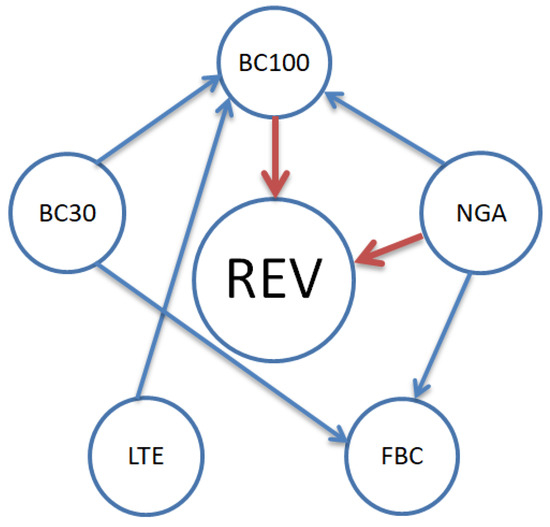 REVt = β1 + β2BC30t + β3BC100t + β4FBCt + β5NGAt + β6LTEt + εt