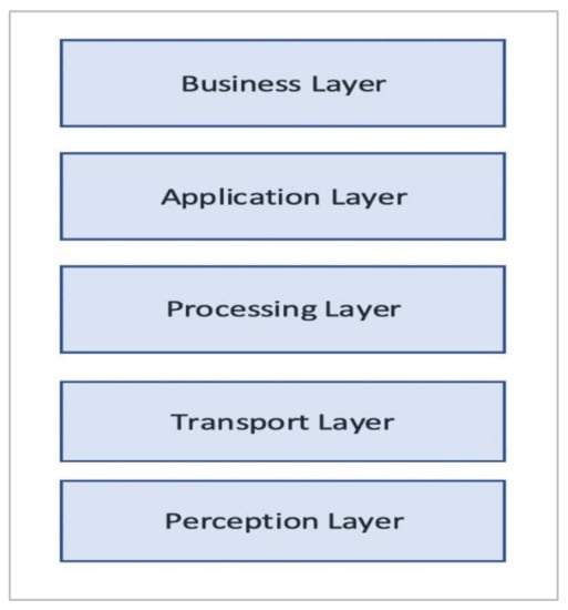 An architecture can also consist of five layers, adding the processing and business layers. Figure 2 shows the five layers: perception, transport, processing, application, and business. The role of the perception and application layers is the same as in the architecture with three layers. We outline the functions and security issues of the remaining three layers.