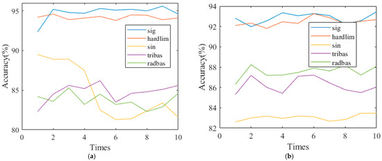 The implicit layer can establish the activation function value of the output of each implicit layer node, which is obtained in this paper by the sigmoid function , which serves to transform the input variables linearly and can be expressed as shown below.