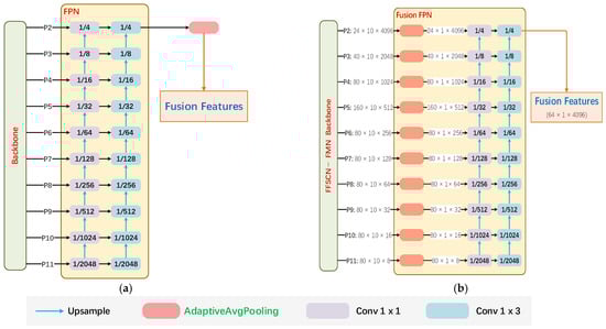 (a) The FPN architecture is used in FFSCN-R and FFSCN-MN. (b) The Fusion FPN architecture is used in FFSCN-FMN.