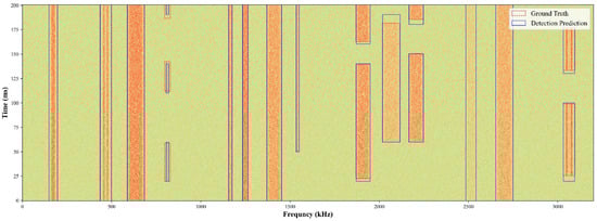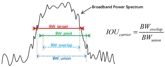 In accordance with [14], we also used the intersection-over-unit (IoU) on carriers to decide the correctness of each sub-carrier on the broadband power spectrum, as shown and defined in Figure 5.