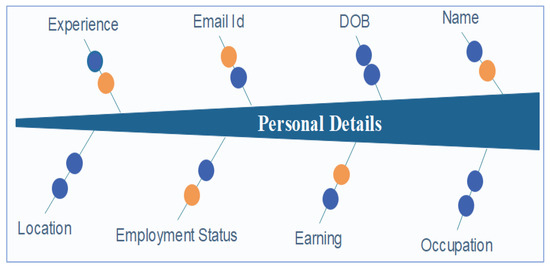 Personal details are further divided into subcategories such as name, date of birth, email address, location, employment status (if any), occupation (student or employee), experience (if any), and earnings (if any), as shown in Figure 3.